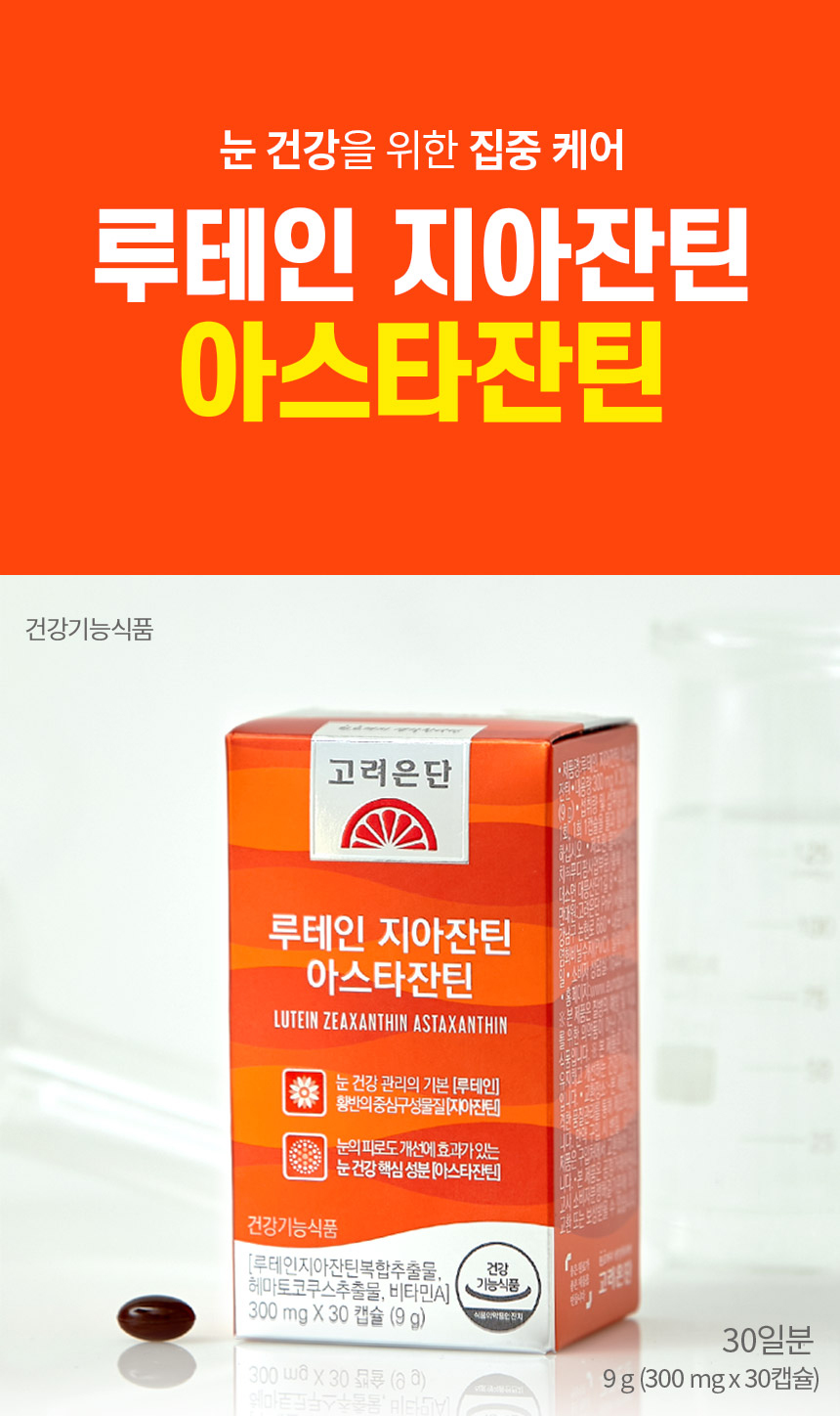 요즘 눈 건강이 좋은지 다들 체크를 해봐야 돼요 저도 그렇지만 주변 분들을 보면 하루에 스마트폰이랑 모니터 보는 시간이 절반 정도는 되니까요 중독이라는 단어를 쓸 정도로 저도 정말 많이 보고 있어요 게다가 직업 자체가 컴퓨터를 하니까 눈이 상할 수밖에 없었어요 안과에도 가보고 항상 검사하면서 너무 나빠지지 않게 관리를 잘하고 있어요 요즘 눈을 건강하게 보낼 수 있도록 케어하기 위해서 고려은 단 루테인, 지아잔틴, 아스타잔틴을 새로 넣었습니다 – 먹는 것만큼 확실한 건 없으니까!