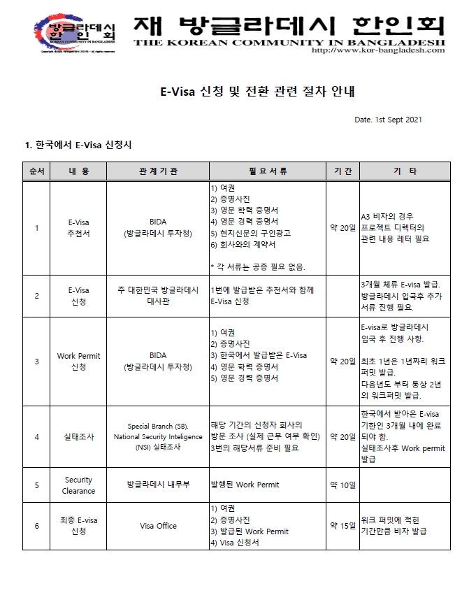 코로나19 팬데믹의 영향으로 방글라데시에 장기로 주재하는 교민과 기업인이 많습니다.12월 말까지 한시적으로 체류를 허가하고 있으나 최근 남아있는 외국인에 대해 SB(SPECIAL BRANCH) POLICE에서 대대적으로 신원조사를 실시하고 있습니다.