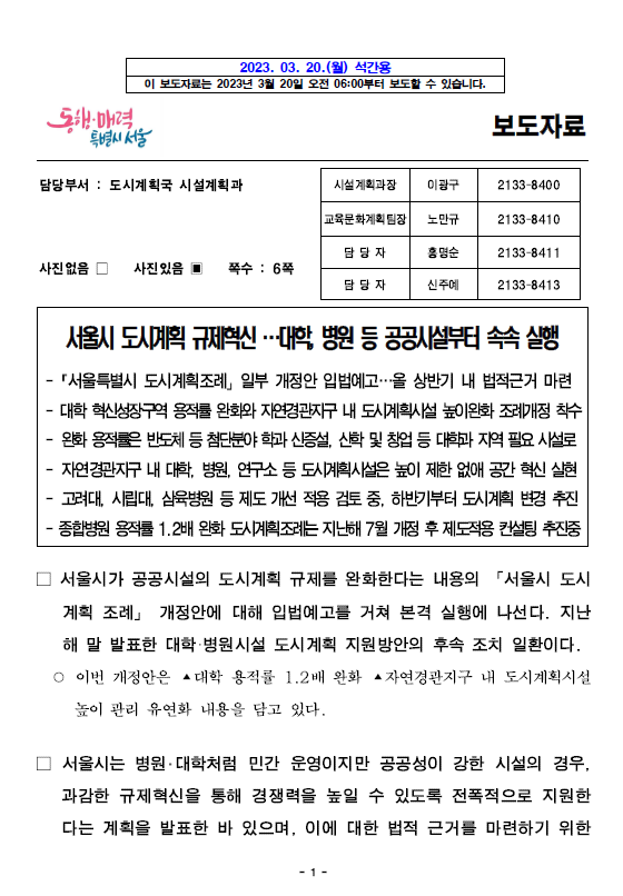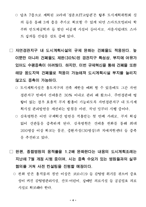 서울시 도시개혁 및 규제혁신 추진계획