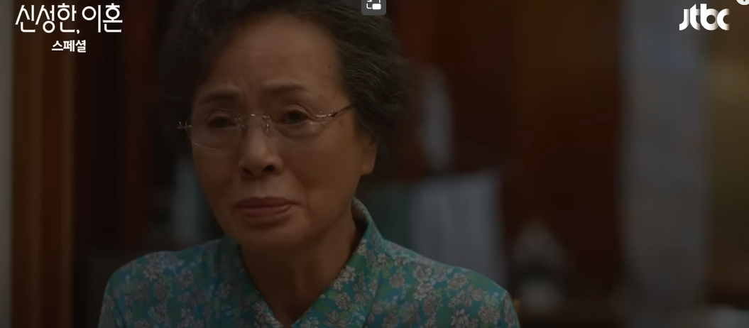어머니는 이제 이해합니다. 곰탱이가 아니었다면 바로 요양원에 갔을 텐데 애란이 때문에 따뜻하게 먹고 덥게 잤는데… 드디어 인정합니다. 애란도 시어머니에게 자신의 잘못을 묻는다. 이것으로 이 가족의 이혼 소송은 끝납니다.