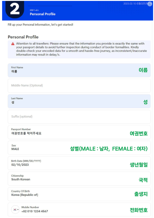 3단계. 영문이름, 여권번호, 성별, 생년월일, 국적, 출생지, 전화번호 등을 적습니다.