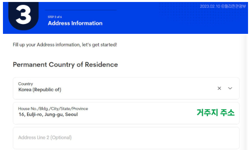 4단계 거주지 주소를 영문으로 입력