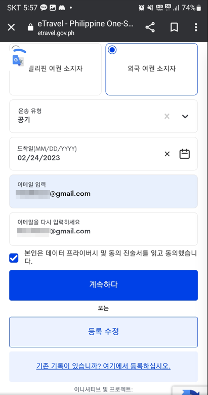 필리핀 전자 이민국에 eTravel에 등록하는 방법