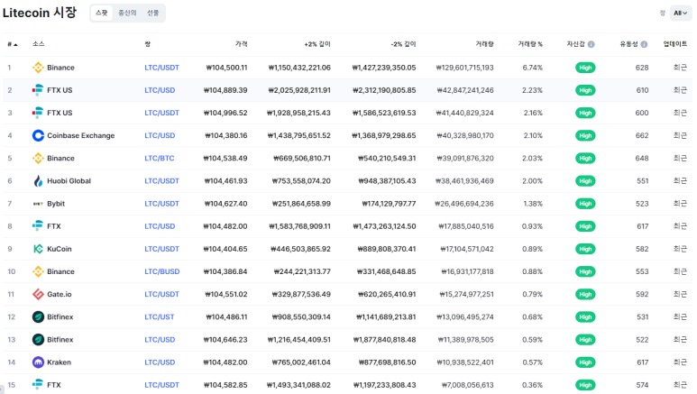 바이낸스, 후오비, 코인베이스 등 주요 글로벌 거래소에도 상장되어 있으며, 거래량이 한 거래소에 집중되지 않고 여러 거래소에 고르게 분포되어 있다고 판단됩니다.