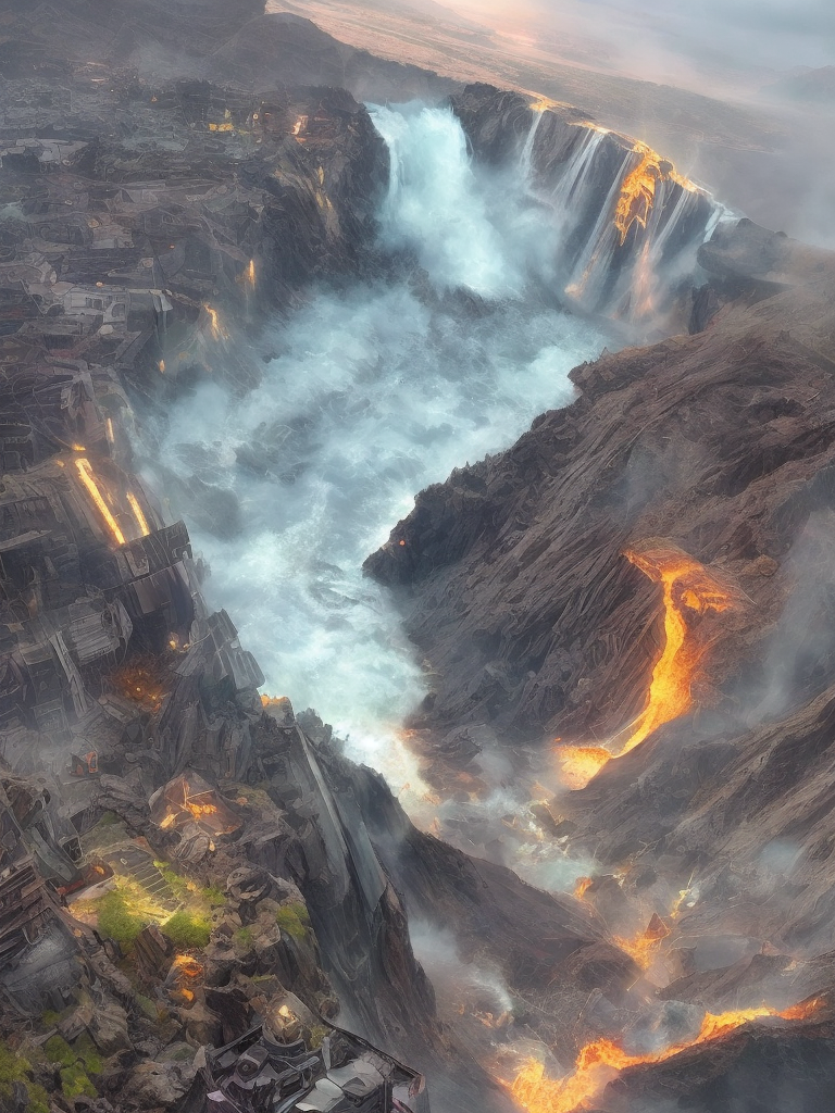 Transformer,distinct_image, high_quality_anime, high_resolution, dam, dock, wasteland, volcano