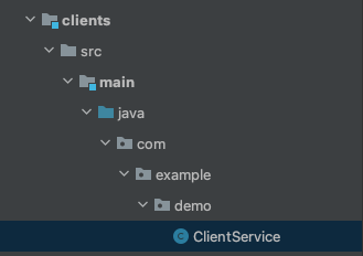 앱 API 모듈과 동일한 패키지를 작성한 다음 ClientService라는 파일을 생성합니다. 물론 테스트 목적으로요.
